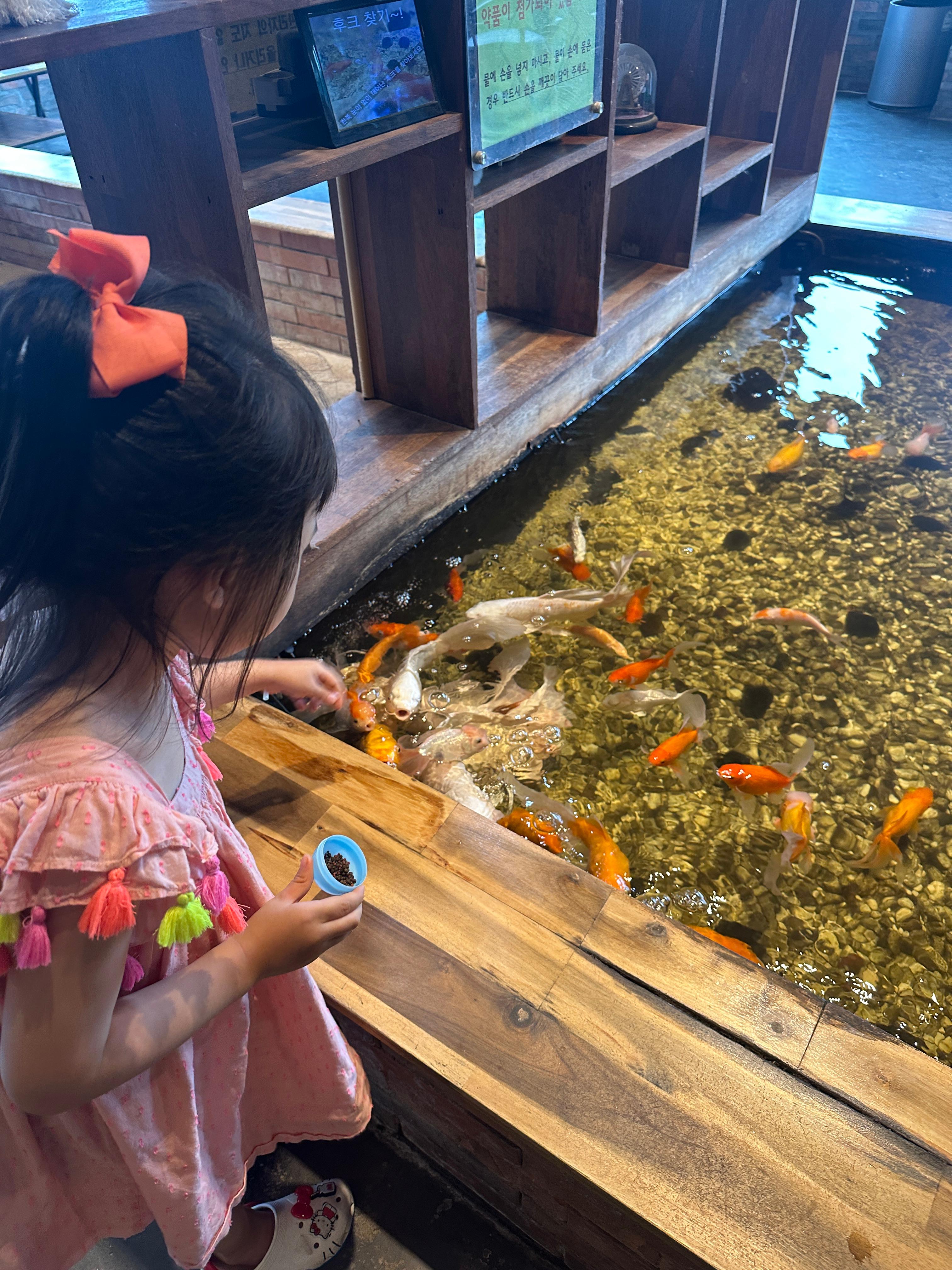 - 다양한 소동물: 토끼 외에 물고기, 기니피그, 햄스터, 닥터피쉬, 거북이, 다람쥐까지! 특히 금붕어 먹이는 1,000원에 구매하며 추가 체험 가능