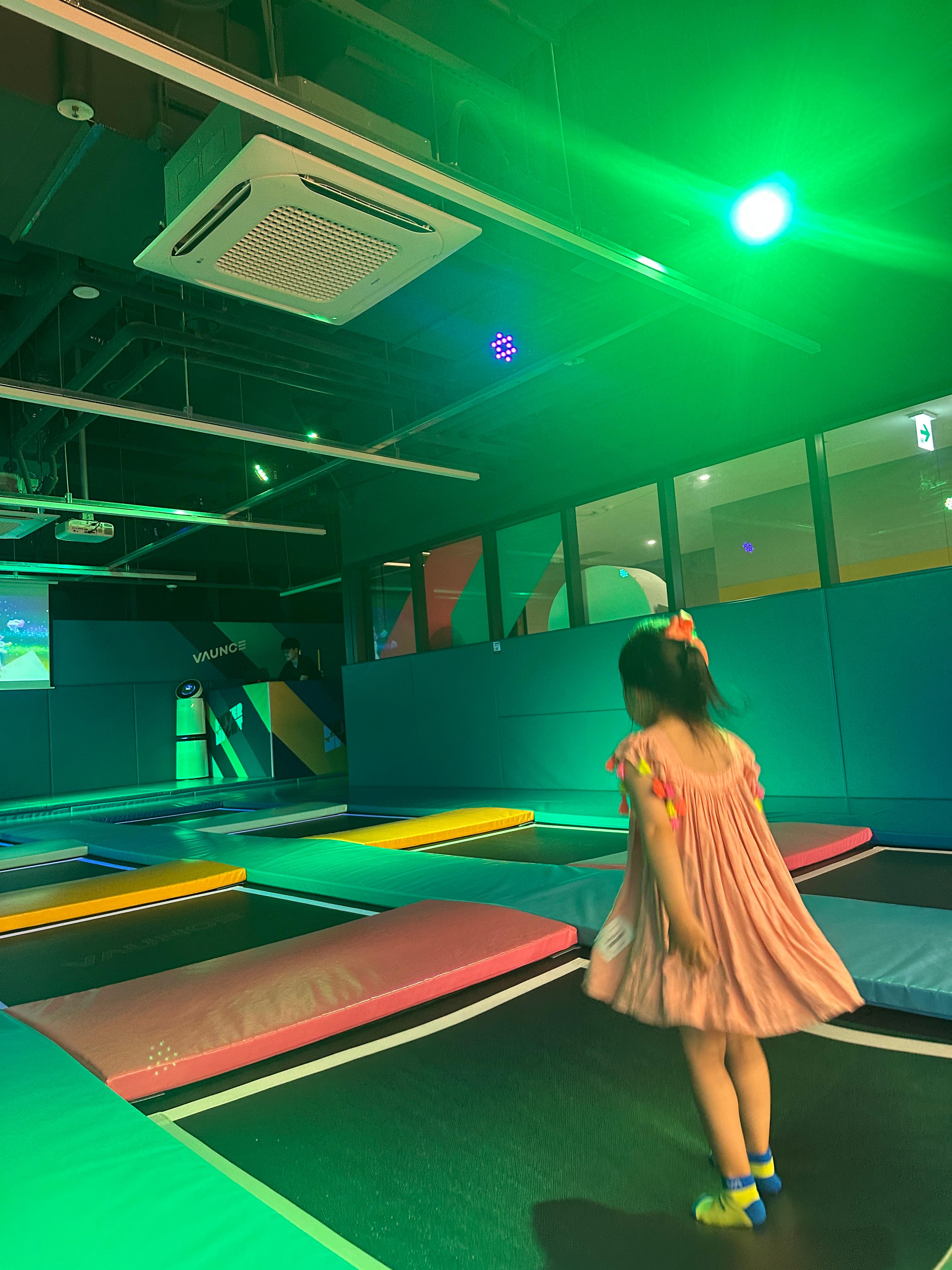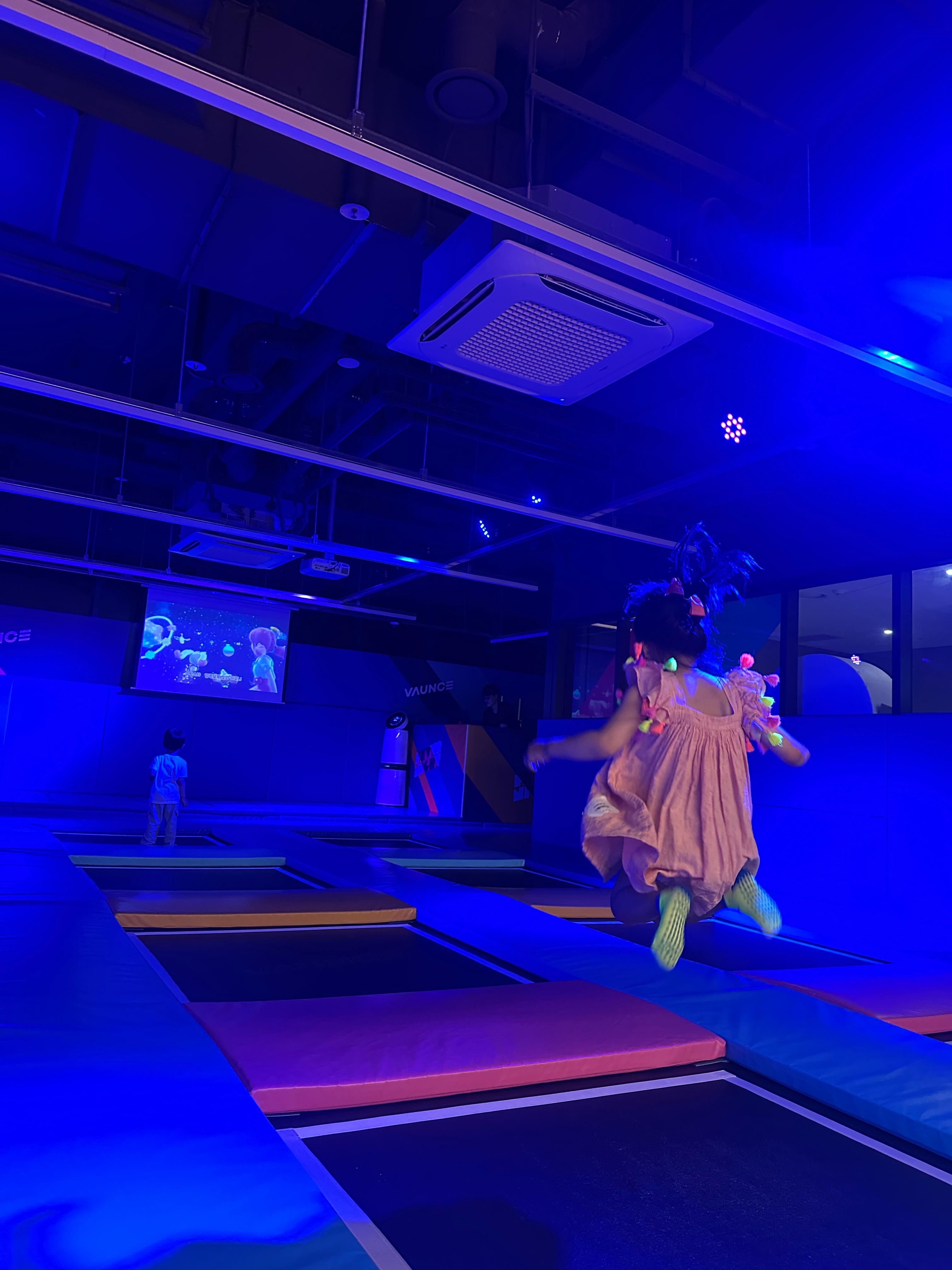 파미어스몰 2층에 위치한 바운스는 실내 트램펄린과 놀이시설이 있는 공간이에요.
